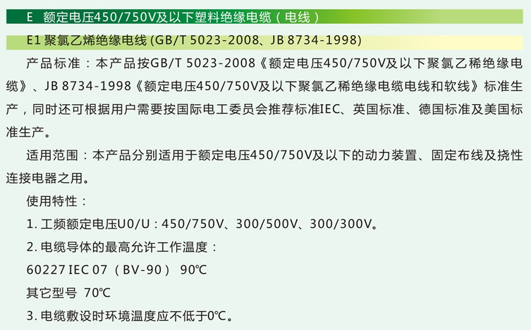 1聚氯乙烯絕緣電線(GB/T5023-2008、JB8734-1998)