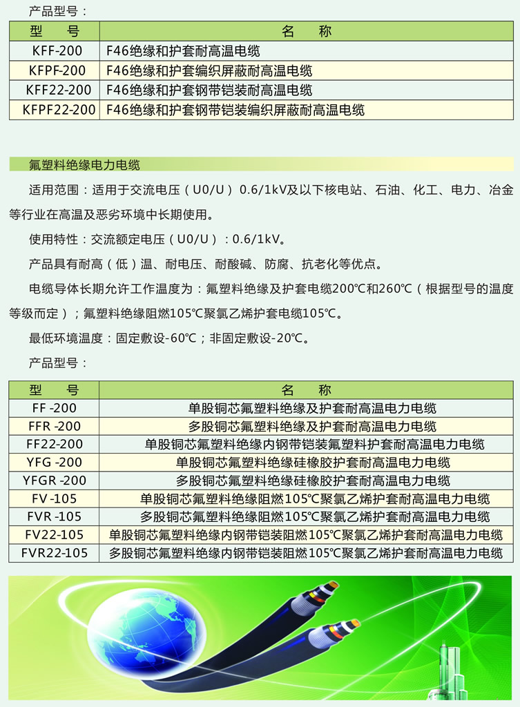 二、使用范圍  本產品適用于高溫環境下額定電壓450/750v及以下控制、信號、保護及測量系統接線之用。